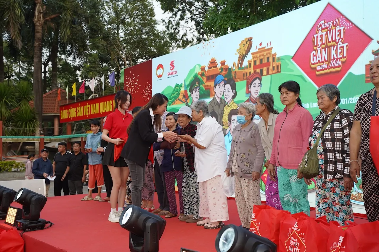 Tại sự kiện ở Quảng trường Vĩnh Long và phường Vĩnh Châu, Cần Thơ, chương trình đã trao tặng 900 phần quà mang thông điệp “Chung Vị Tết Việt” cho các hộ gia đình có hoàn cảnh khó khăn – những con người đại diện cho sự lạc quan và ý chí vươn lên trong cuộc sống, cùng đội ngũ bộ đội biên phòng đang ngày đêm bảo vệ sự yên bình cho người dân. Mỗi phần quà không chỉ bao gồm các nhu yếu phẩm và những hương vị Tết quen thuộc như bánh tét, mứt Tết, mà còn có phong bao lì xì như một lời chúc may mắn và tốt lành gửi đến người dân nhân dịp năm mới. Thông qua món quà ý nghĩa này, SABECO gửi gắm mong muốn mang đến sự trọn vẹn và đầm ấm cho những người chưa có cơ hội đón một mùa Tết đủ đầy, để ai cũng cảm nhận được mình là một phần của niềm vui chung trong dịp năm mới.