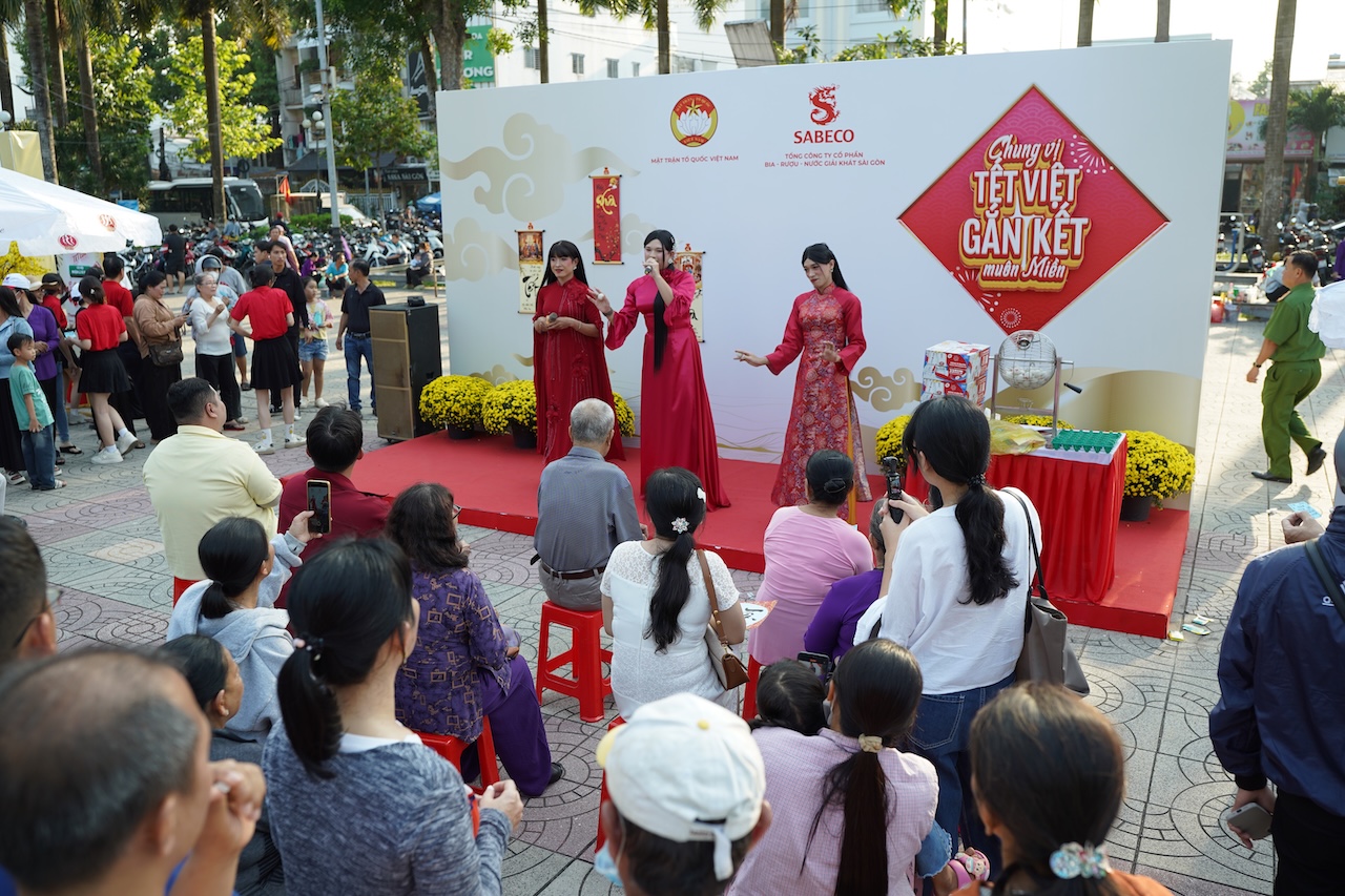 Bên cạnh đó, sự kiện cũng mang đến các hoạt động trải nghiệm văn hóa Tết hấp dẫn tại khu vực “Vị Khai Xuân” với hoạt động biểu diễn văn nghệ, xin chữ Ông Đồ tại khu vực “Vị Tết Đậm Đà Từ Muôn Vẻ” cùng Bia 333, và hoạt động chụp hình lưu giữ khoảnh khắc Tết sum vầy tại khu vực “Vị Hỷ Rộn Ràng”. Khu vực “Tỏa Vị Gắn Kết” cùng Bia Saigon Lager thu hút sự tham gia đông đảo người dân địa phương với các trò chơi mini game tương tác thú vị, lấy cảm hứng từ những hoạt động gắn kết quen thuộc trong ngày Tết như ca hát, nâng ly chúc mừng và chúc Tết đầu năm.